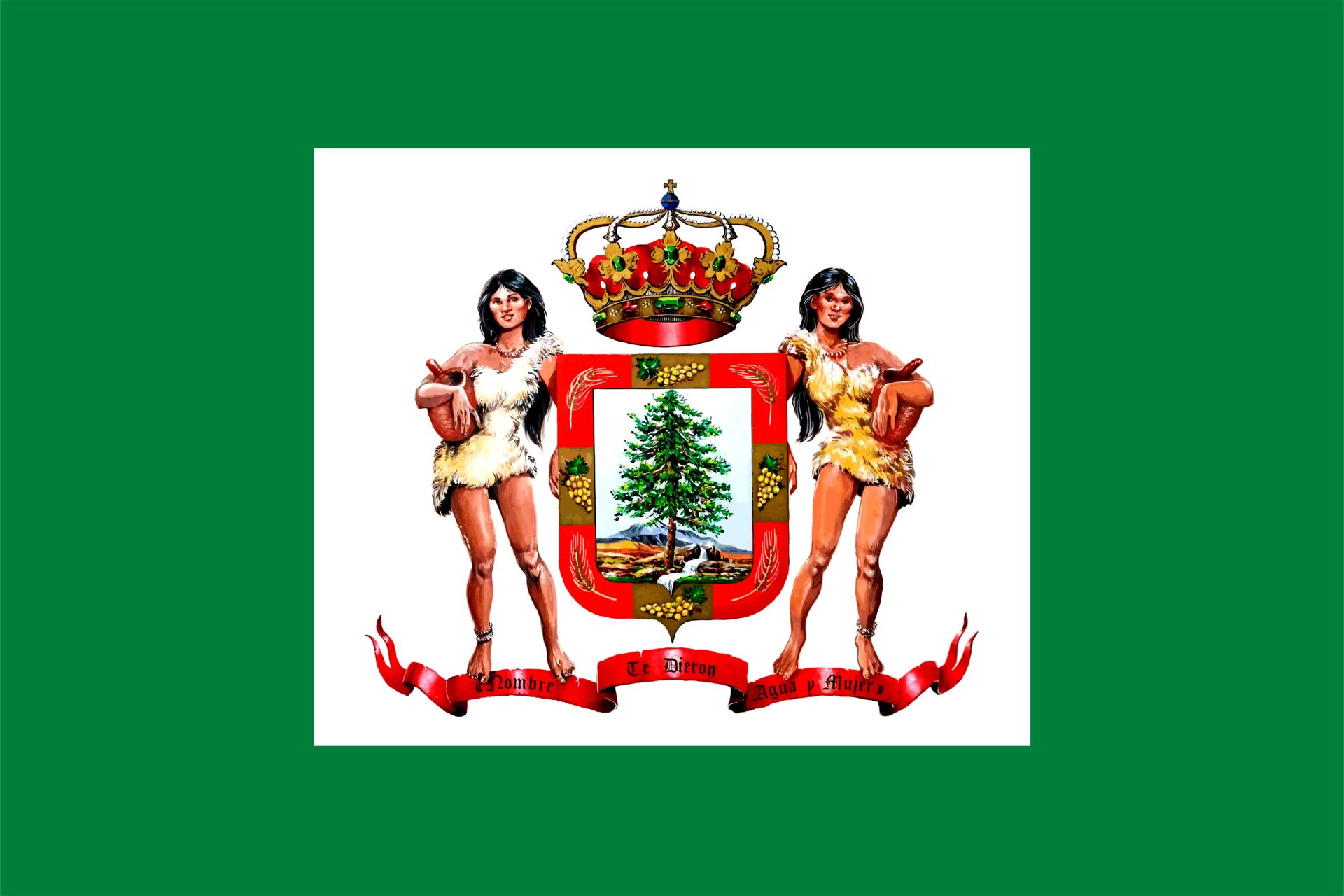Sobre un fondo verde que evoca la exuberancia de la naturaleza y la riqueza agrícola que rodea al municipio, ondea el pendón municipal. En su centro, un rectángulo blanco, como un espejo que refleja la pureza del agua, alberga el escudo municipal. El blanco simboliza la fuente legendaria que dio nombre al municipio y la riqueza hídrica de la zona, mientras que el verde representa el frondoso pinar y las fértiles tierras que circundan la localidad.
