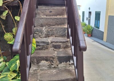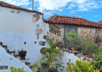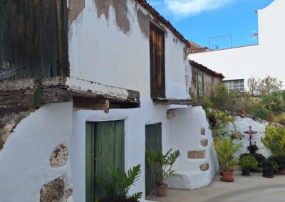 Las dos casas reseñadas, de estilo canario, ambas de dos plantas con tejado a cuatro aguas y de planta rectangular, conservan su estructura original, salvo los comentados balcones. En una de ellas, el acceso a la estancia superior se realiza por el exterior con una escalera de mampostería rematada por escalones de cantería. Las puertas y las ventanas de madera de tipología entabladas hablan del origen muy austero de las dos casas.