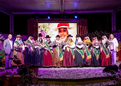En esta gala, un total de siete jóvenes, representando a los diferentes barrios del municipio, optan al título de reina de la Fiesta de la Cosecha.