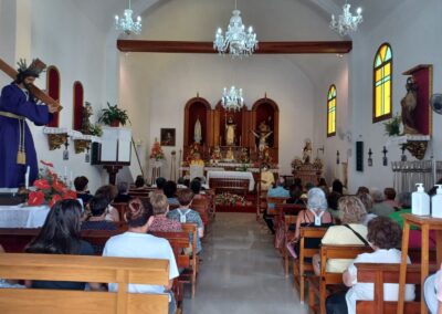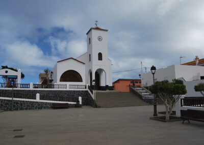 La ermita se erige sobre una pequeña loma, en un solar que fue donado por un vecino del pueblo. Desde su privilegiada posición, se pueden avistar numerosos municipios del norte de la isla y todo el barrio costero, cuya advocación le da nombre. La edificación de cemento consta de una sola nave abovedada de planta rectangular, con una torre exterior que también le sirve como pórtico de entrada.