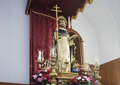 La construcción de la sacristía fue un añadido posterior, se aborda gracias a las donaciones de los vecinos y ahorros con los que contaba el templo. La autorización episcopal para su construcción fue otorgada el 12 de abril de 1959 siendo obispo «el obispo de los pobres», el güimarero don Domingo Pérez Cáceres poco antes de su muerte en 1961. En su interior, de ornamento sencillo, destaca la imagen del santo patrón, realizada con buena factura en pasta de madera policromada y dorada; así como una antigua talla de pasta de madera de San Antonio de Padua, procedente del templo parroquial del municipio. También, destacable, la imagen de la Virgen de Fátima; igualmente, de pasta de madera situadas ambas en repisas. Finalmente, situadas en sus repisas, las pequeñas imágenes de la Virgen del Carmen y otra de San José.