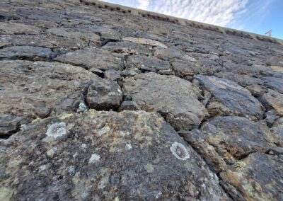 La «pared de Secundino» destaca por sus dimensiones, de más de 100 metros de largo y 7 metros de altura, y la exquisita técnica de construcción en piedra. Quienes conocieron a los autores de este monumento, contaban lo meticulosos que eran al colocar una piedra junto a la otra, ya que no todas servían. Además, se afirma que esta hermosa pared de piedra era aún más grande y que parte de ella todavía está enterrada bajo el camino.
