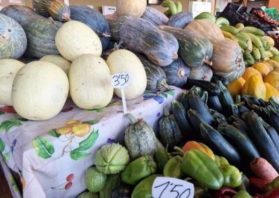 Nuestro Mercado está conformado por 45 puestos, distribuidos de la siguiente manera: 23 se dedican a la agricultura convencional, 7 a la agricultura ecológica, 3 a la venta de quesos, 2 a la venta de flores, 5 a la repostería y panadería, 4 a la artesanía y 1 a la comercialización de salazón, miel, encurtidos, café y huevos. Cabe destacar que uno de los puestos dedicados a la agricultura ecológica ofrece, además de verduras, huevos de producción ecológica. Como puedes observarse, contamos con una amplia diversidad de puestos, lo que nos confiere una característica distintiva y única.
